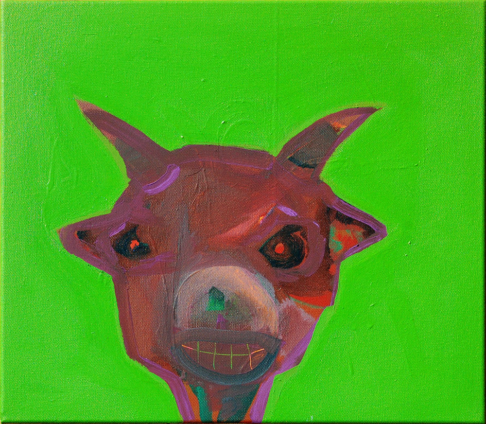 La vida al campo: oveja y cabron, 2013, Acryl/Leinwand, 40 x 45 cm